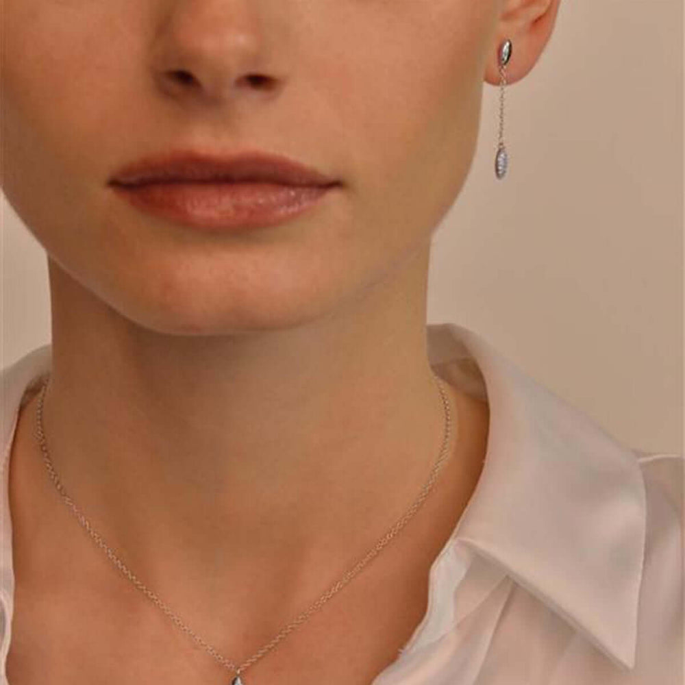 Перли – сладководни Mabé, подчертани от родирано сребро и понякога от малки цирконии. Перлите омекотяват профила и добавят елегантна, класическа светлина.