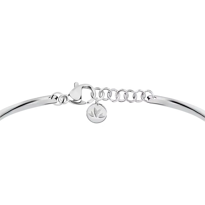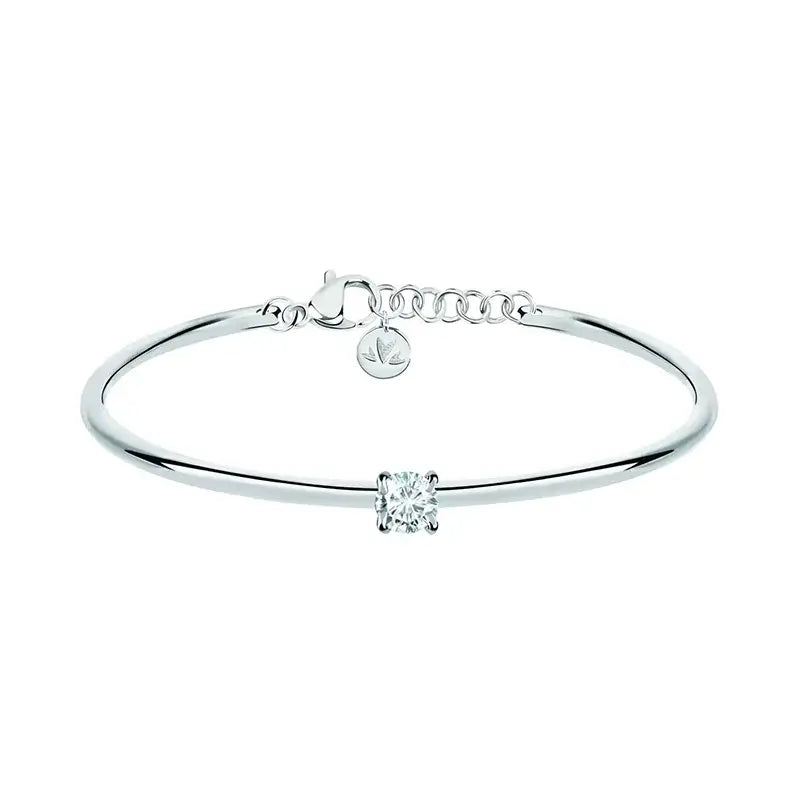 Минималистична твърда гривна Morellato Cerchi с централно монтиран бял циркон – изчистен солитър, който придава фин блясък. Изработена е от медицинска неръждаема стомана, полирана до огледален сребрист тон и щадяща към кожата. Диаметърът е Ø 6.03 см, а вградената верижка-удължител с карабинка дава допълнителна сигурност и регулиране. Компактният профил позволява самостоятелно носене или стилизиране в стек с фини гривни. Италианска елегантност за всеки ден.
