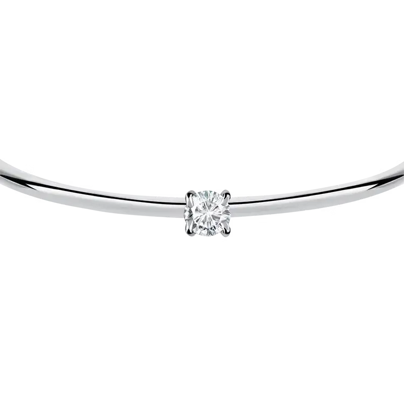 Дамска твърда гривна от медицинска стомана със солитър бял циркон, модел SAKM63, студио кадър.