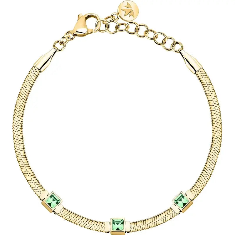 Дамска гривна от медицинска стомана със златно PVD, три зелени циркона 3×3 мм, студиен кадър, Morellato SAVY31.