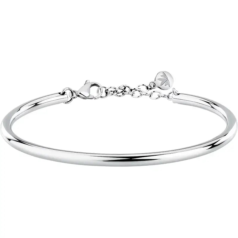 Минималистична твърда гривна (bangle) Morellato Cerchi с огледален сребрист блясък и фина верижка за сигурност. Изработена е от медицинска неръждаема стомана – хипоалергенна и устойчива на ежедневна употреба. Вътрешният диаметър е Ø 6 см (еквивалентна обиколка ~18.8 см), а карабинката позволява леко регулиране за комфортно прилягане. Тънкият профил я прави идеална както самостоятелно, така и в комбинация с часовник или други гривни. Италиански минимализъм за чист завършек на визията.