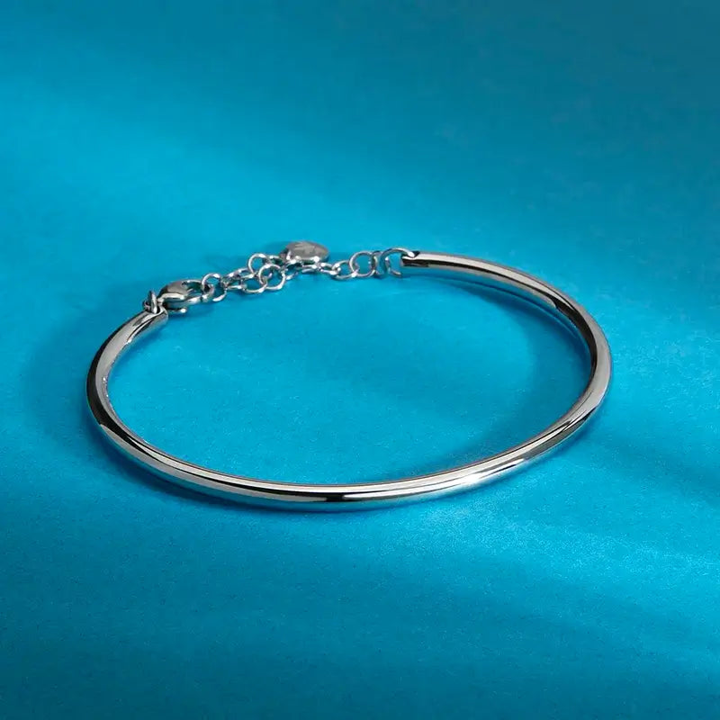 Тънкият профил позволява лесно layering до метален часовник или няколко фини гривни, без да се драскат помежду си.
