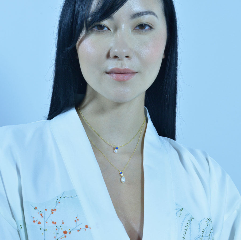 Дамско сребърно колие със сладководни перли и Лапис лазули. 272C0056