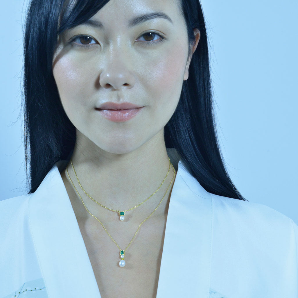 Дамско сребърно колие със златно покритие и сладководна перла.