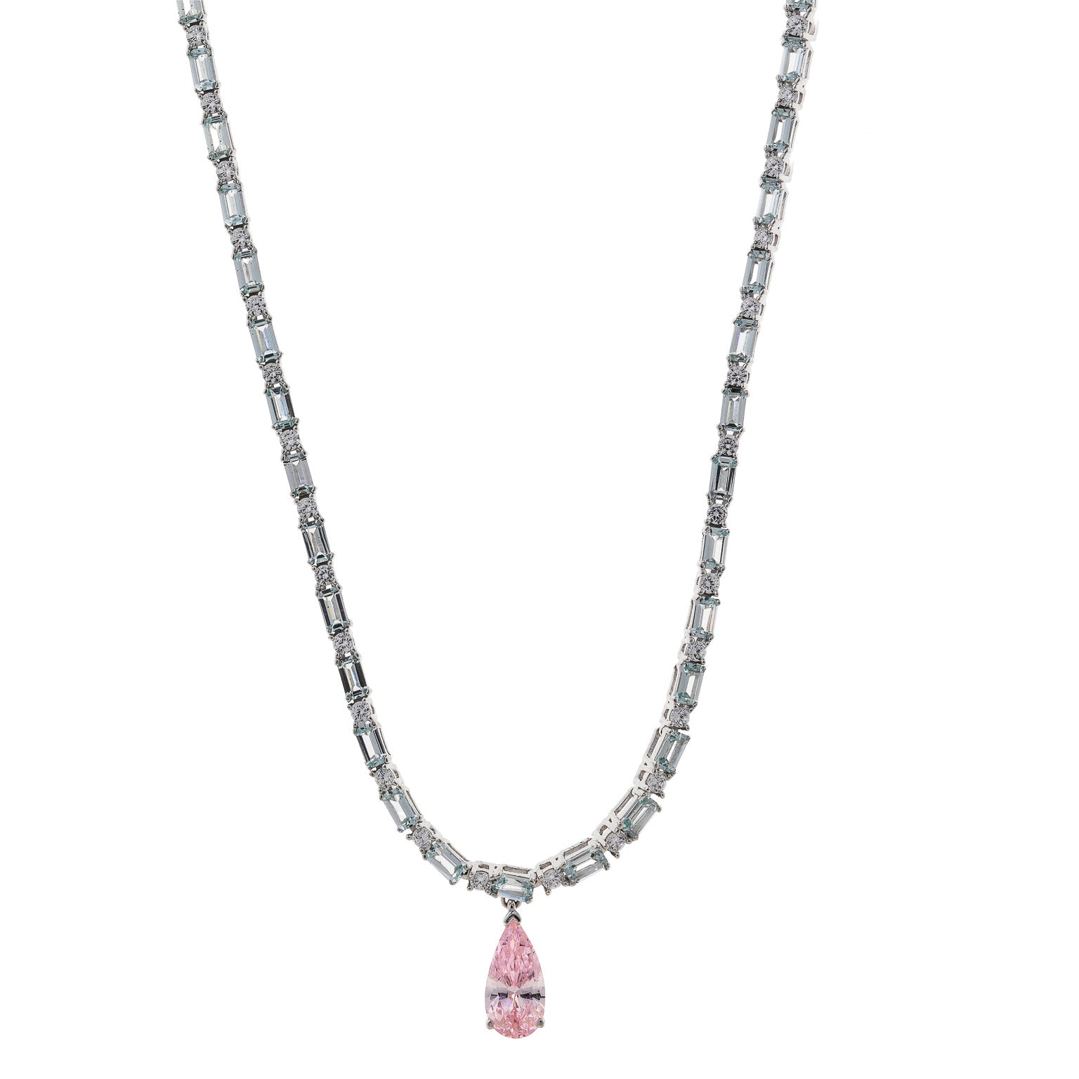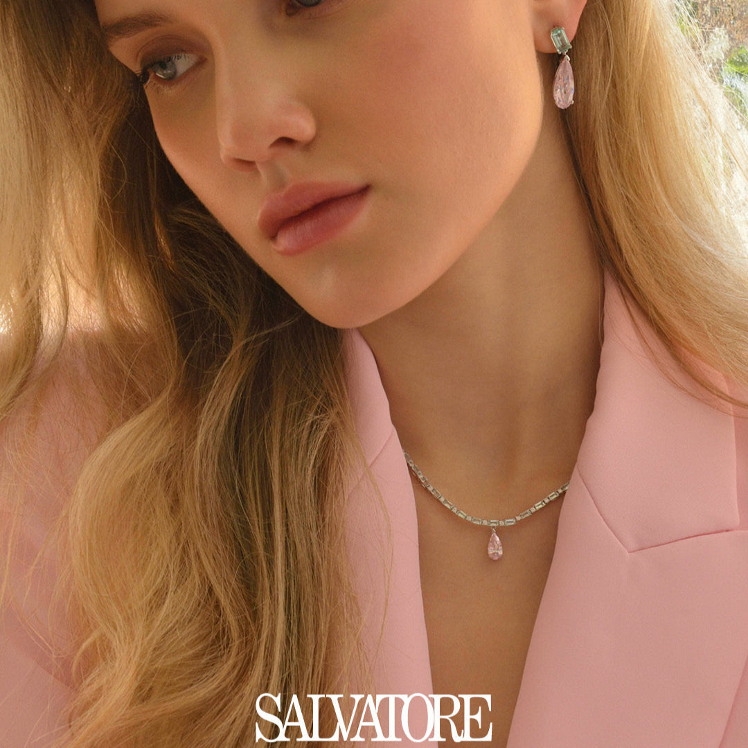 Елегантно сребърно колие с розови и зелени циркони. 136C0414