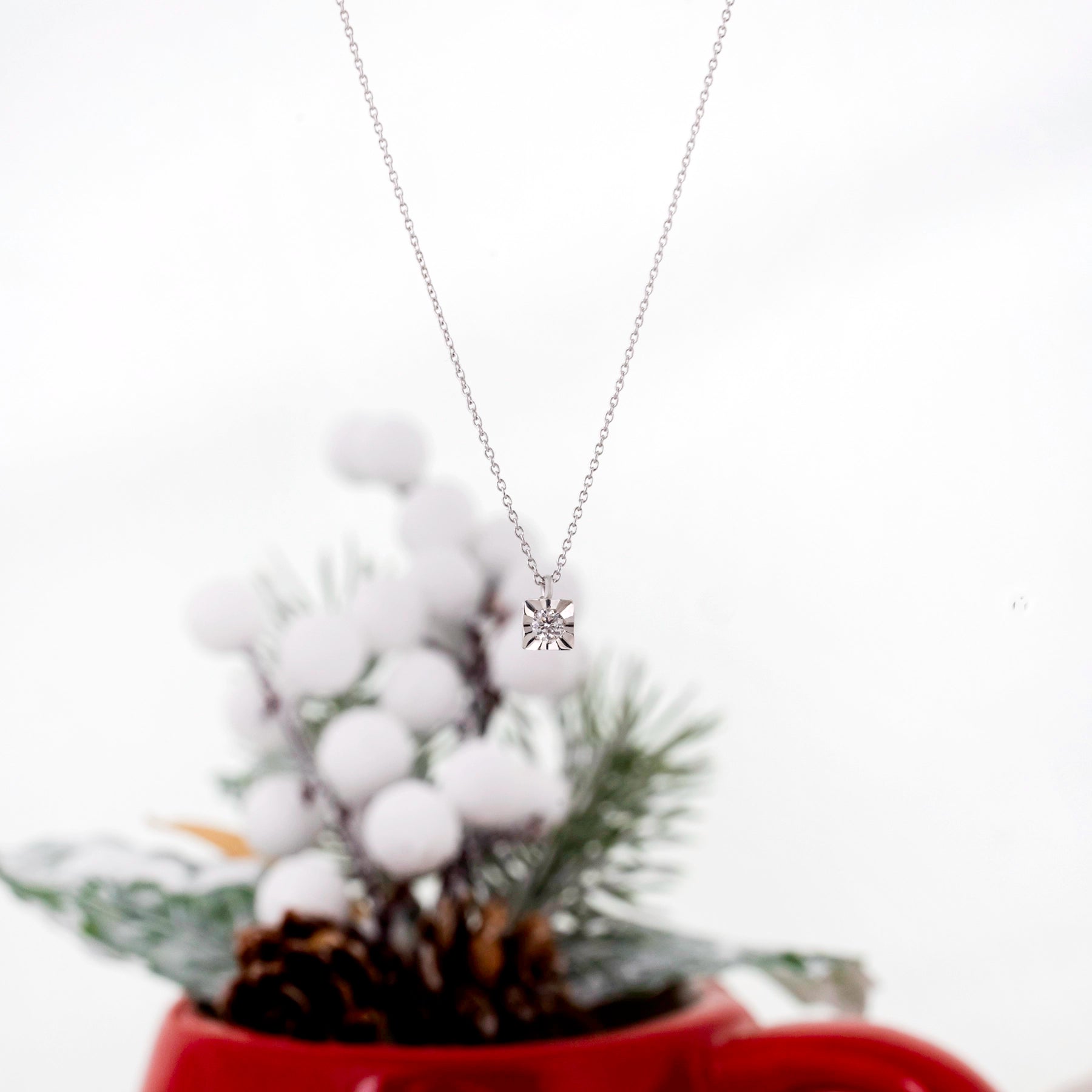 Дамско златно колие от бяло злато с инкрустиран диамант 0.03ct