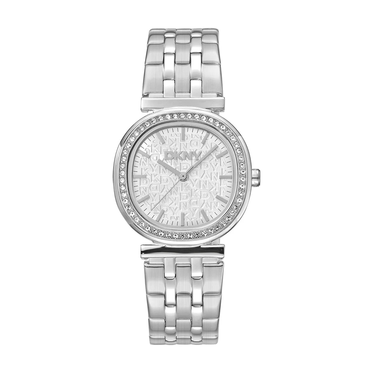 • Dial: silver with embossed DKNY logo; crystal bezel