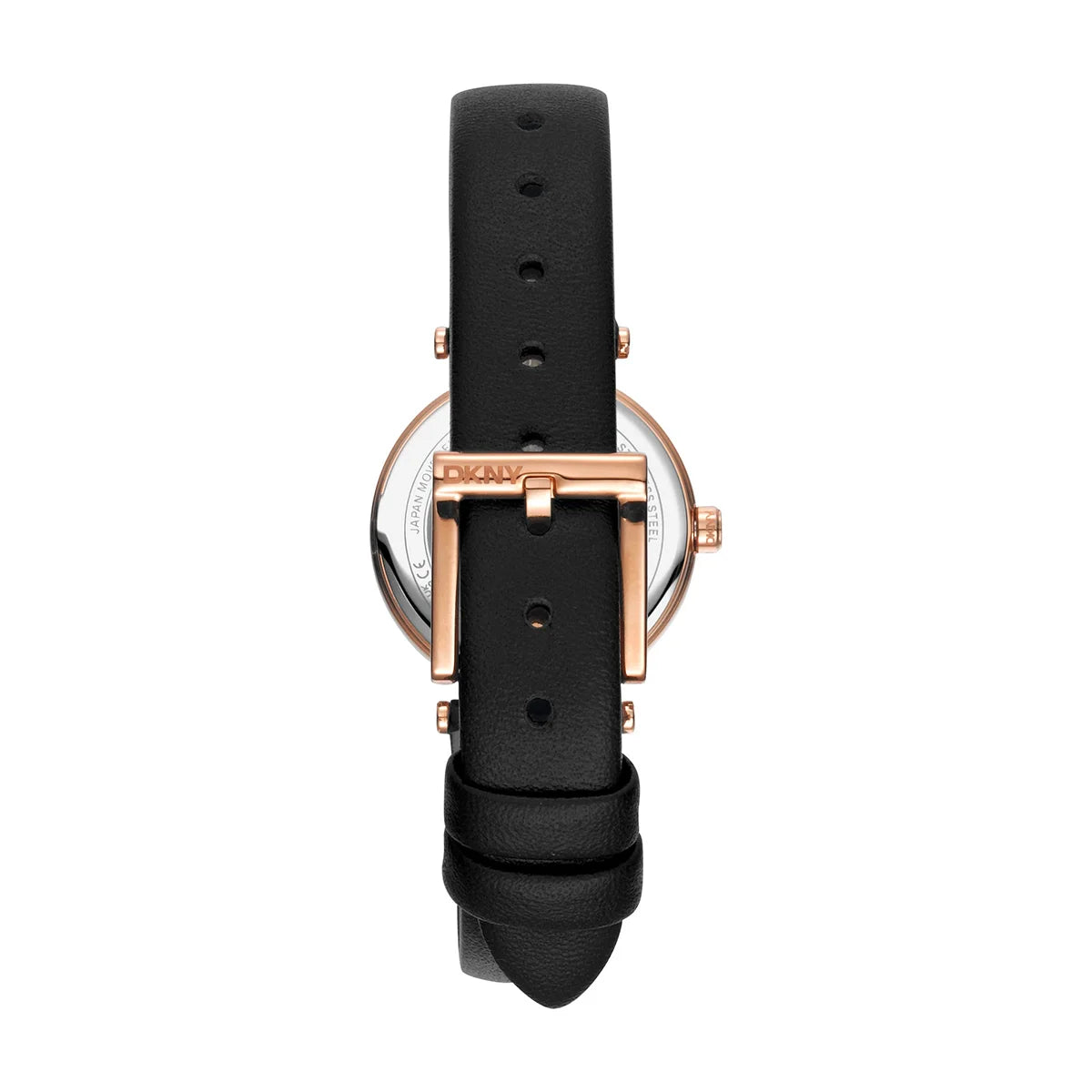 Гръб на дамски часовник DKNY Essential Mini – черна кожена каишка с класическа тока, модел DK1L043L0035