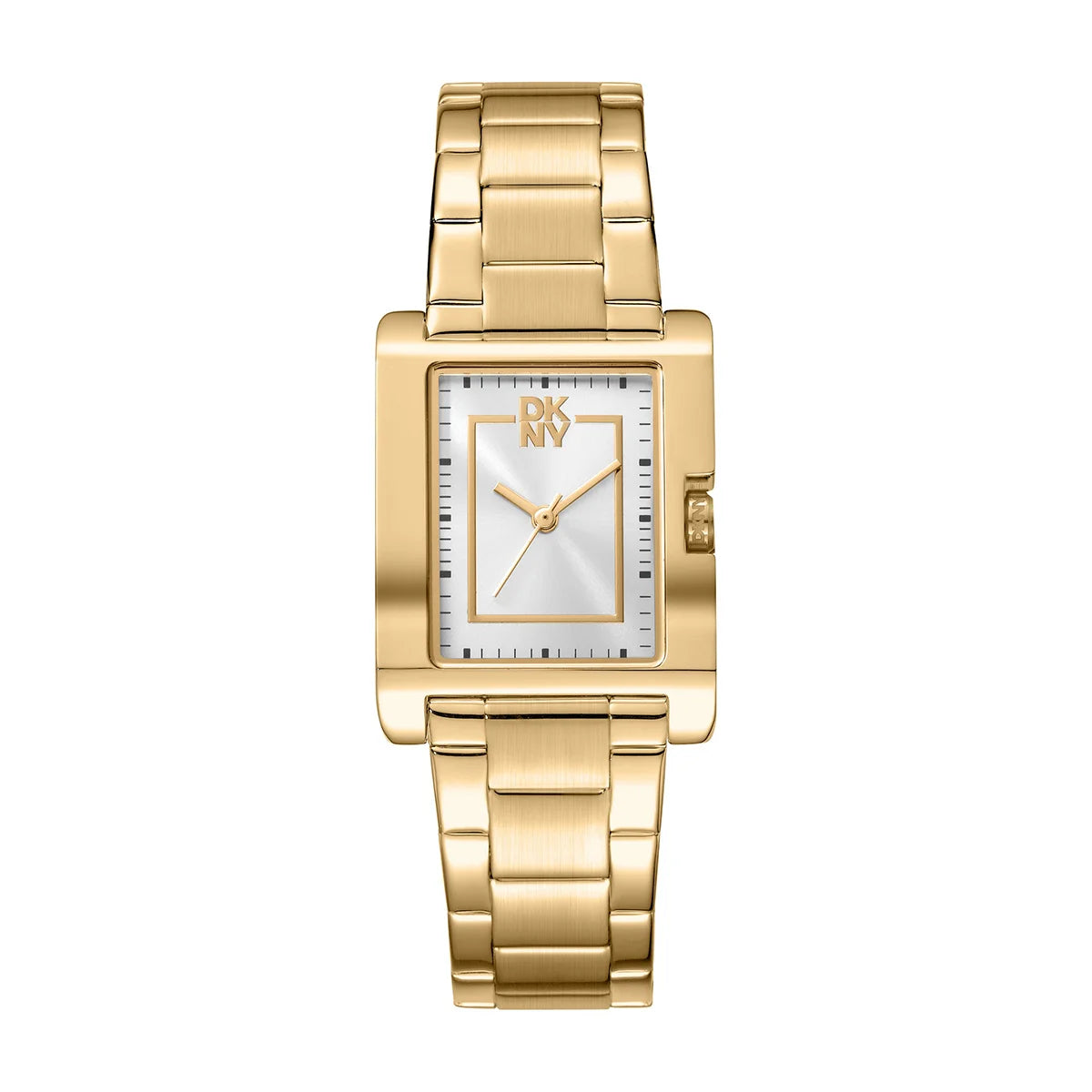 The elegant Westside Midi is that luxurious DKNY women's watch that stands as a fine jewelry accent on the wrist. The rectangular case 25.5 × 33.5 mm is clean and modern, and the 6.75 mm profile fits comfortably and slides under the cuff. The case and chain are made of 316L stainless steel with a gold IP coating – wear-resistant and with a rich color. The silver dial with minimalist markers and the DKNY logo is protected by mineral glass for reliable everyday use.