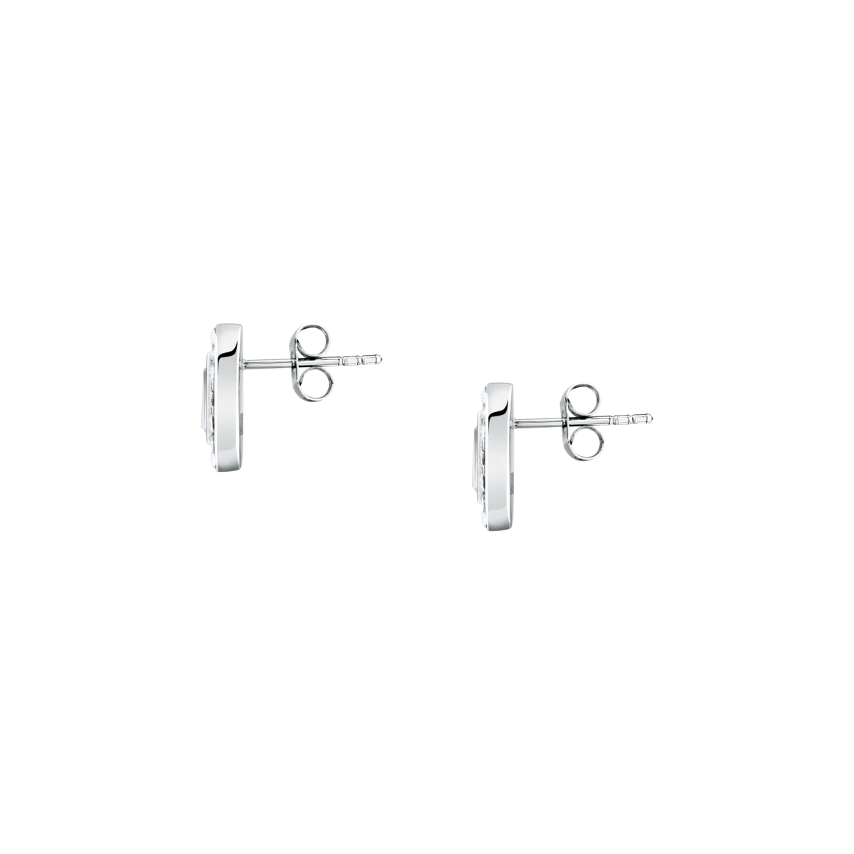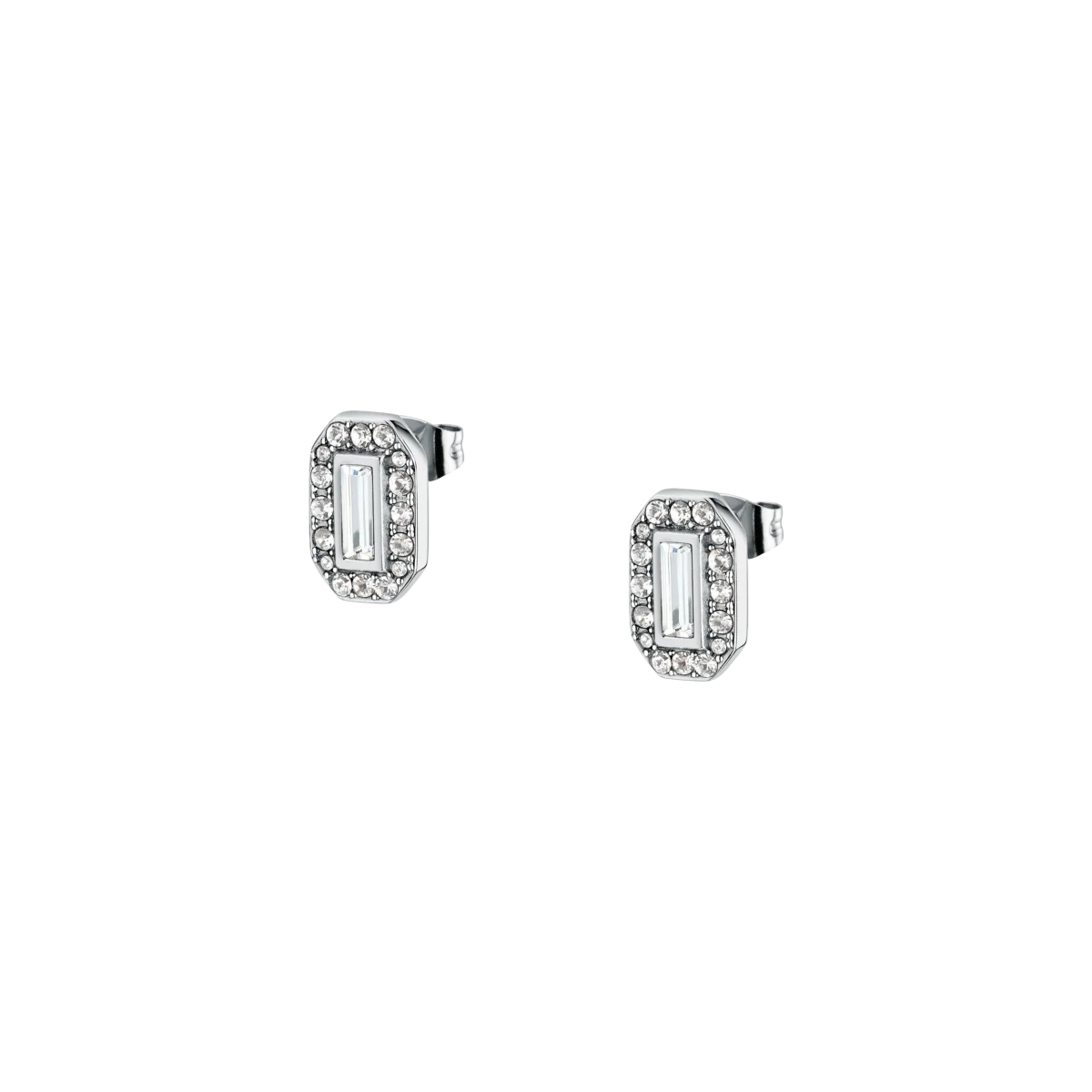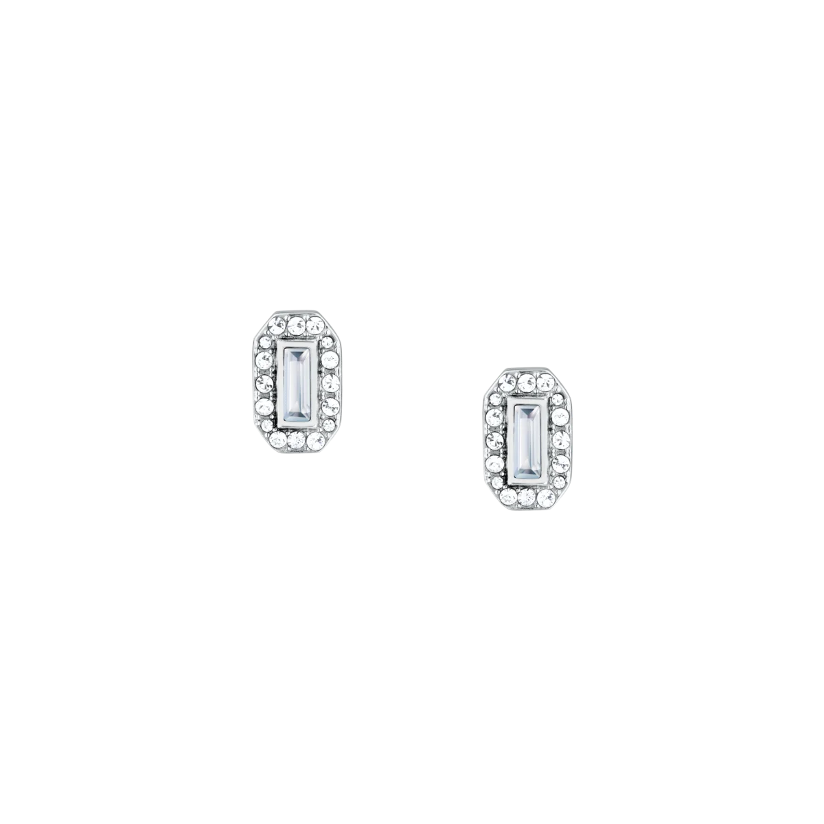 Тези дамски обеци от колекция Crystals на Karl Lagerfeld са създадени за моменти, в които искате фин, но категоричен блясък. Компактният овален силует е изцяло покрит с малки бели кристали, а в центъра блести издължен багетен камък, който придава модерно излъчване и дълбочина.
