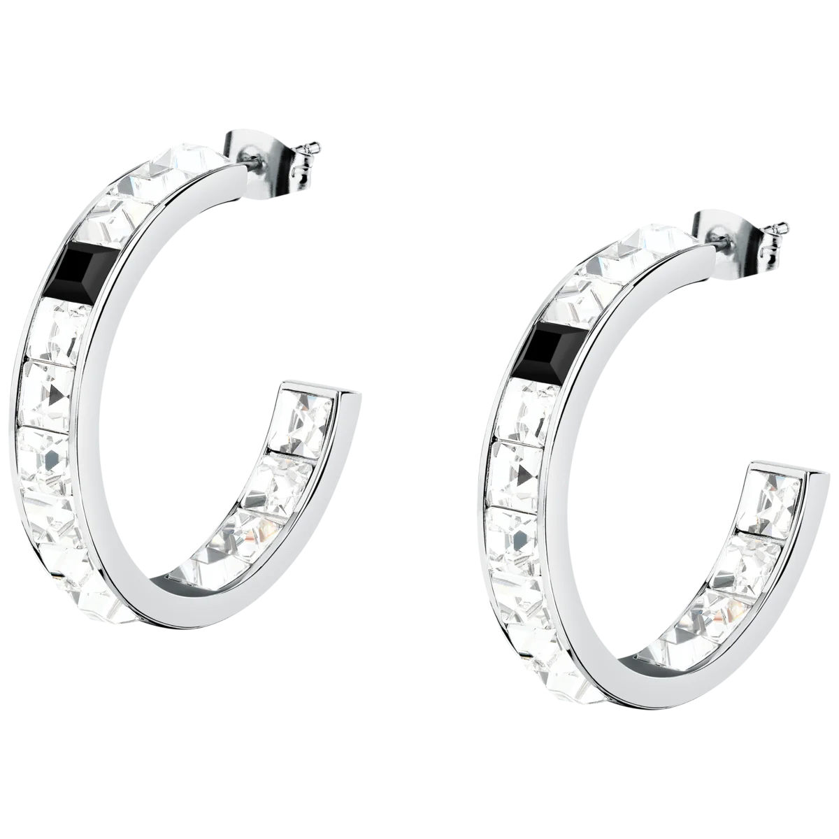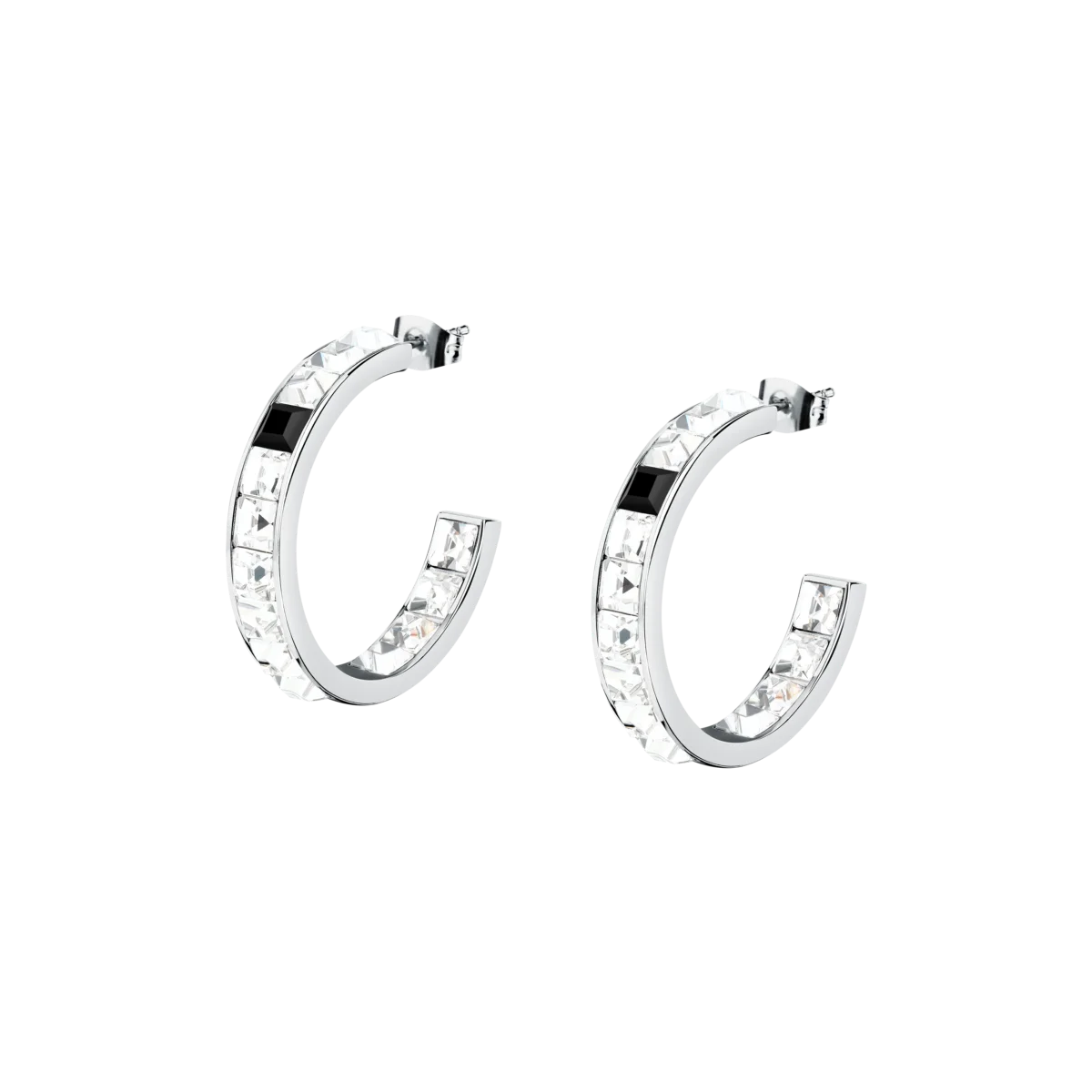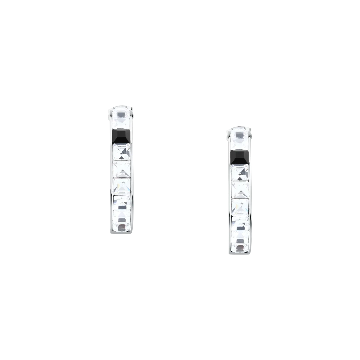 Дамски обеци Karl Lagerfeld Crystals, кръгли халки със серия квадратни бели кристали и черен акцент – модел KLAYC36