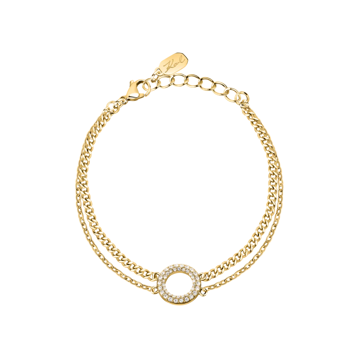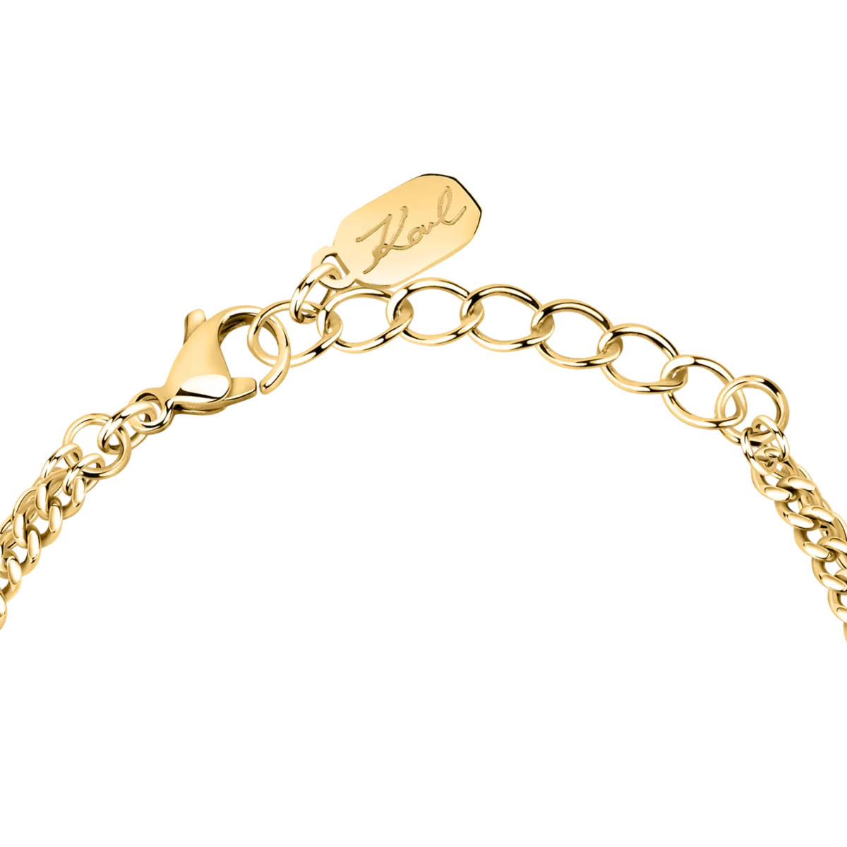 Тази златиста дамска гривна с кристали се комбинира чудесно с часовник от неръждаема стомана, с други фини гривни или самостоятелно като основен акцент. Идва в оригинална кутия Karl Lagerfeld с официална гаранция – готово решение за подарък, който изглежда впечатляващо още при отваряне.