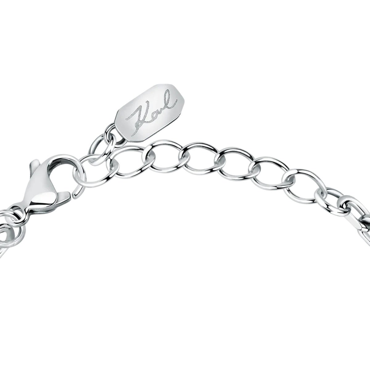 Всички материали са хипоалергенни и не потъмняват, което прави тази гривна чудесен избор за чувствителна кожа. Моделът пристига в оригинална подаръчна кутия Karl Lagerfeld със сертификат за автентичност – готов за стилен подарък или специално допълнение към личната ви колекция бижута.