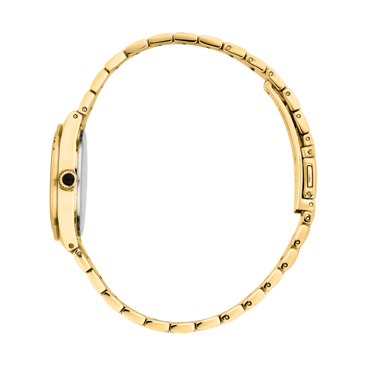 Корпусът и верижката са от неръждаема стомана с IP златно покритие, което придава наситен цвят и по-висока устойчивост на износване в сравнение с обикновено позлатяване. Верижката със сгъваща се закопчалка стои стабилно на китката и позволява корекция на дължината при нужда.
