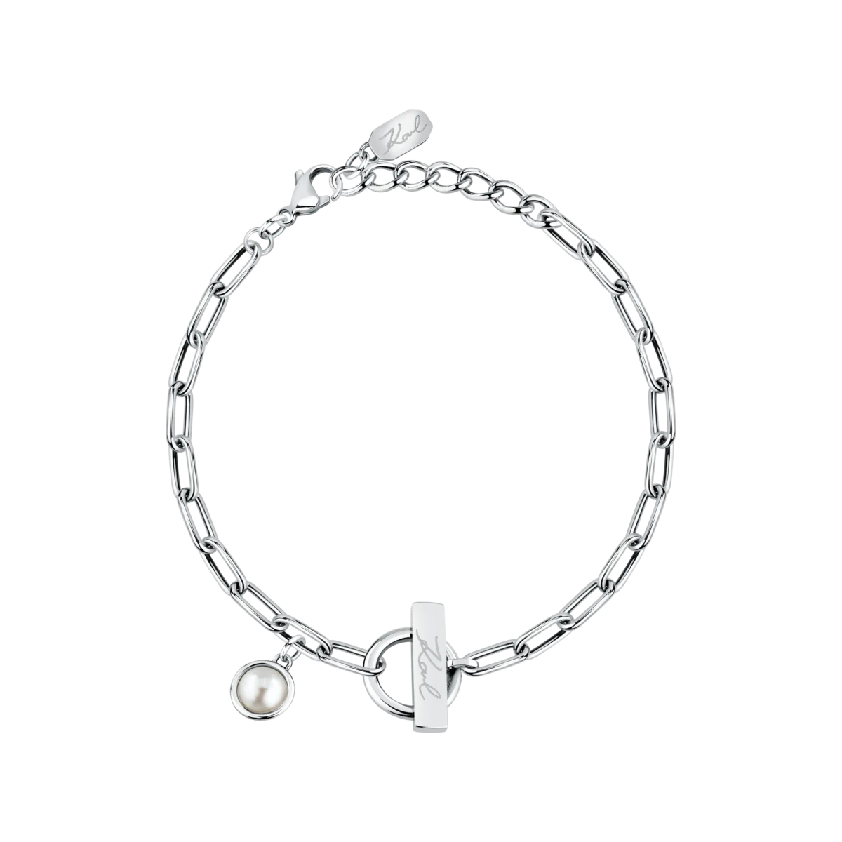 Закопчаване с карабинка и удължител на дамска гривна Karl Lagerfeld Pearl от стомана с перла – KLAYR06