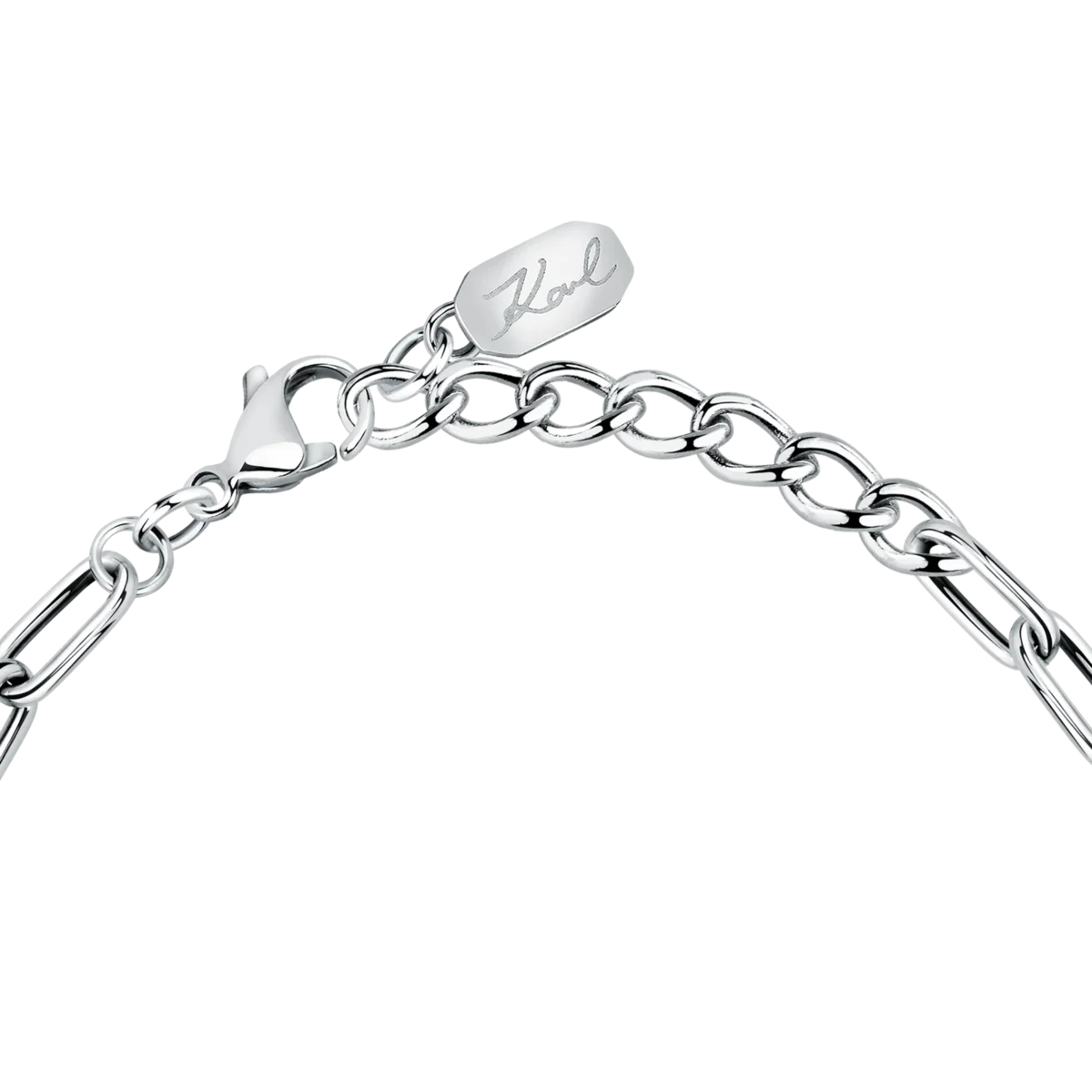 Благодарение на дължината 17 + 3 см гривната се регулира удобно за различна обиколка на китката. Закопчаването е тип карабинка с удължителна верижка и малка плочка с подпис Karl, която подчертава дизайнерския произход на модела. Това е стилна дамска гривна с перла, която стои прекрасно самостоятелно или в комбинация с други тънки гривни.