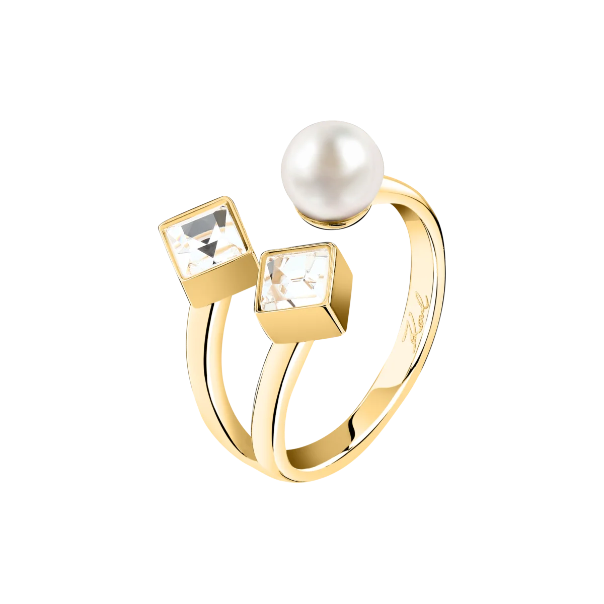 Дамският пръстен Karl Lagerfeld Pearl е създаден за жени, които обичат играта между класическа елегантност и модерен дизайн. Отворената форма с две рамена завършва с бяла перла и два кубични кристала – ефектен акцент, който стои впечатляващо както самостоятелно, така и в комбинация с други бижута.