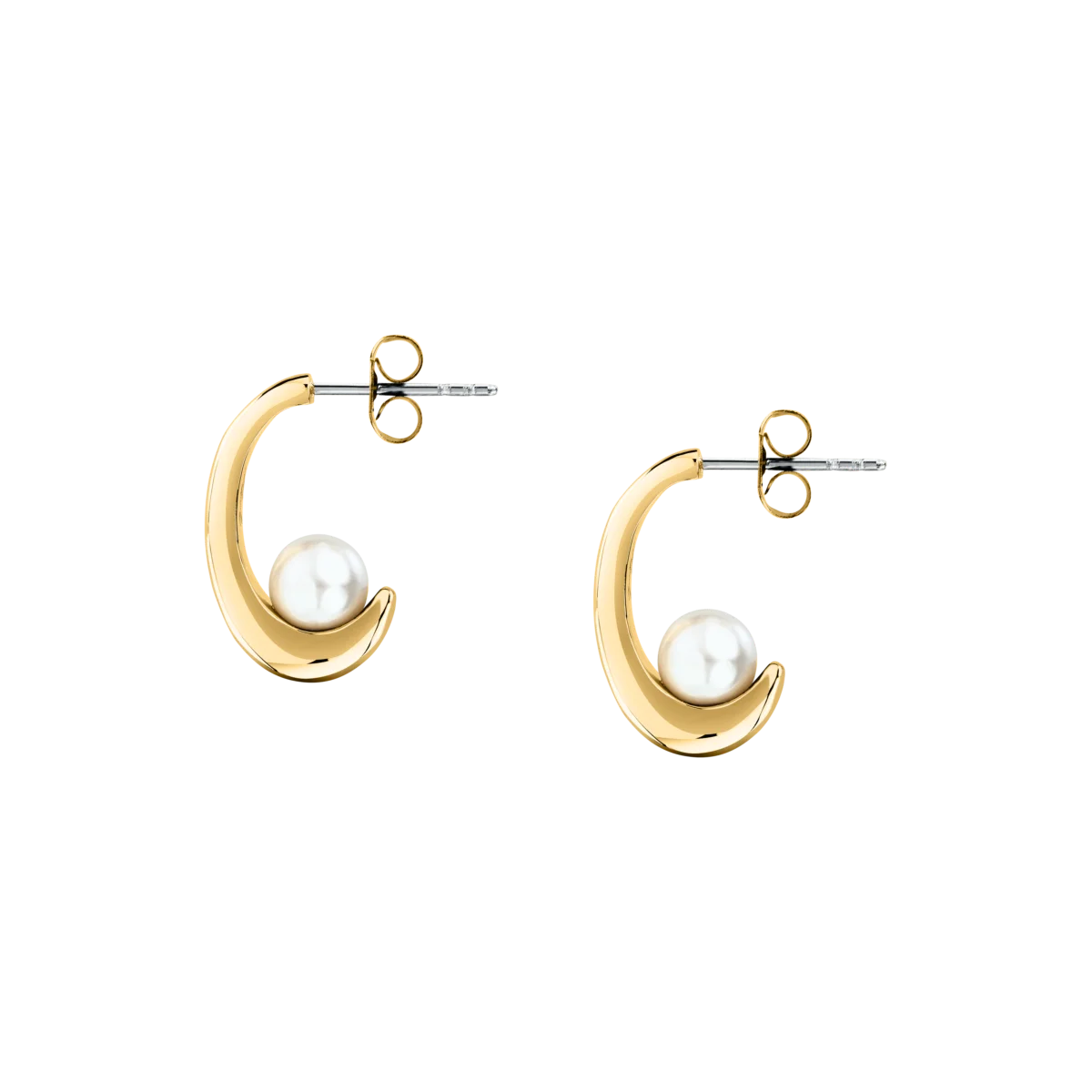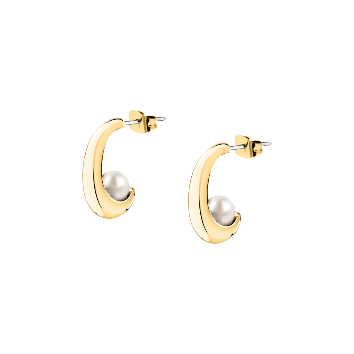 Дамските обеци Karl Lagerfeld Pearl KLAYR21 предлагат модерна интерпретация на класическата перла. Изчистените златисти халки образуват плавна дъга, в чиято основа е поставена фина бяла перла – минималистичен, но много ефектен акцент за всяка визия.