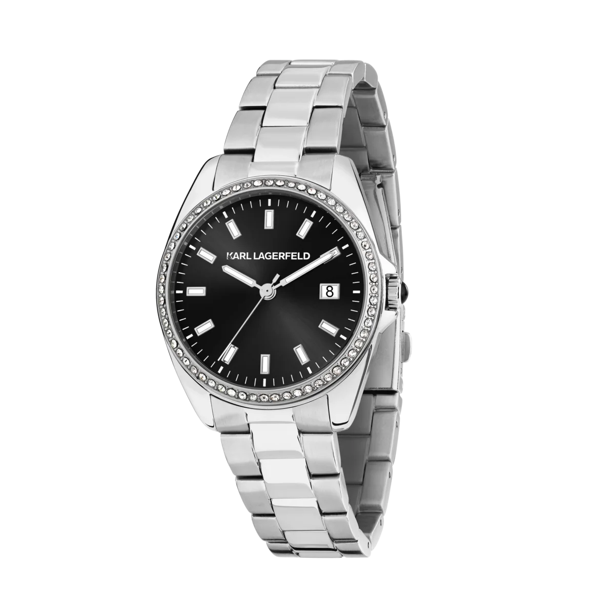 Дамският часовник KARL LAGERFELD Round Essentials предлага балансирана визия между спортен стил и изчистена елегантност. Кръглият корпус с диаметър 35 мм стои модерно върху китката, а тънкият профил позволява часовникът да се носи удобно и с риза, и с любимо кожено яке.