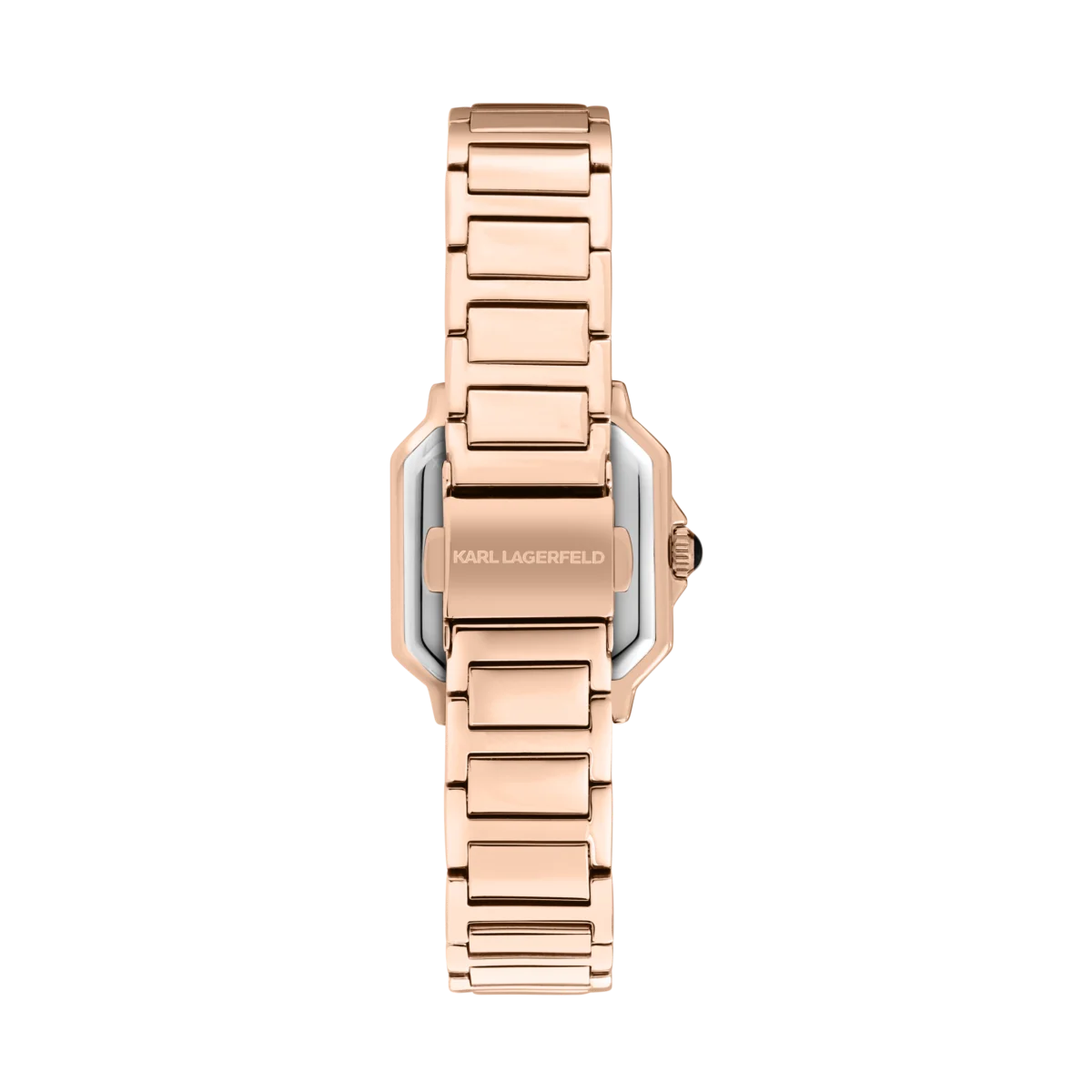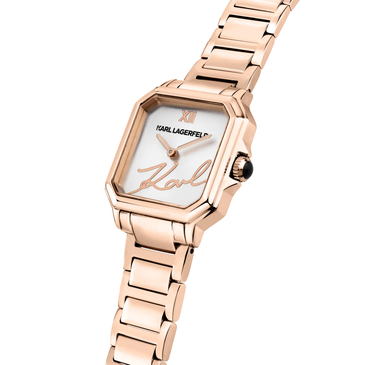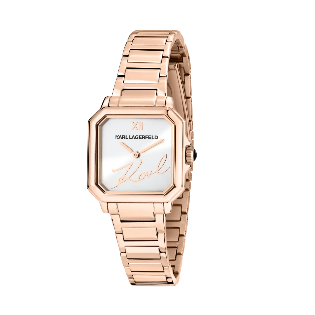 Дамският часовник Karl Lagerfeld Square Classics е създаден за любителките на елегантния градски стил. Характерният квадратен корпус 33 x 27,8 мм с меки фасетирани ръбове и изчистен циферблат превръщат модела в фин акцент, който стои като бижу на китката.