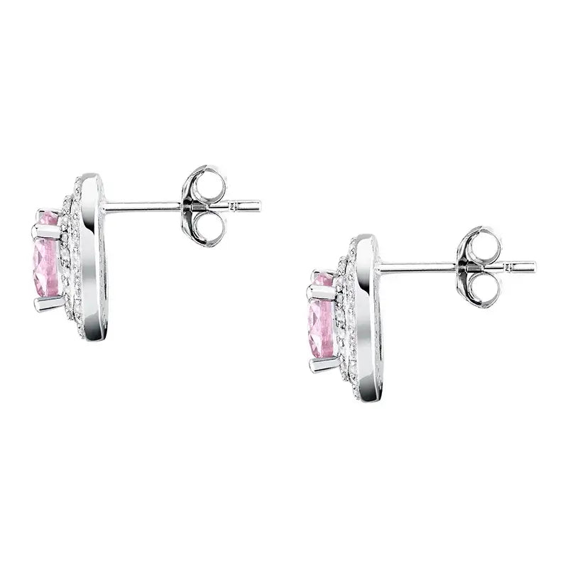 Сребърни обеци на винт „ореол“ 1 см, розов циркон | Morellato